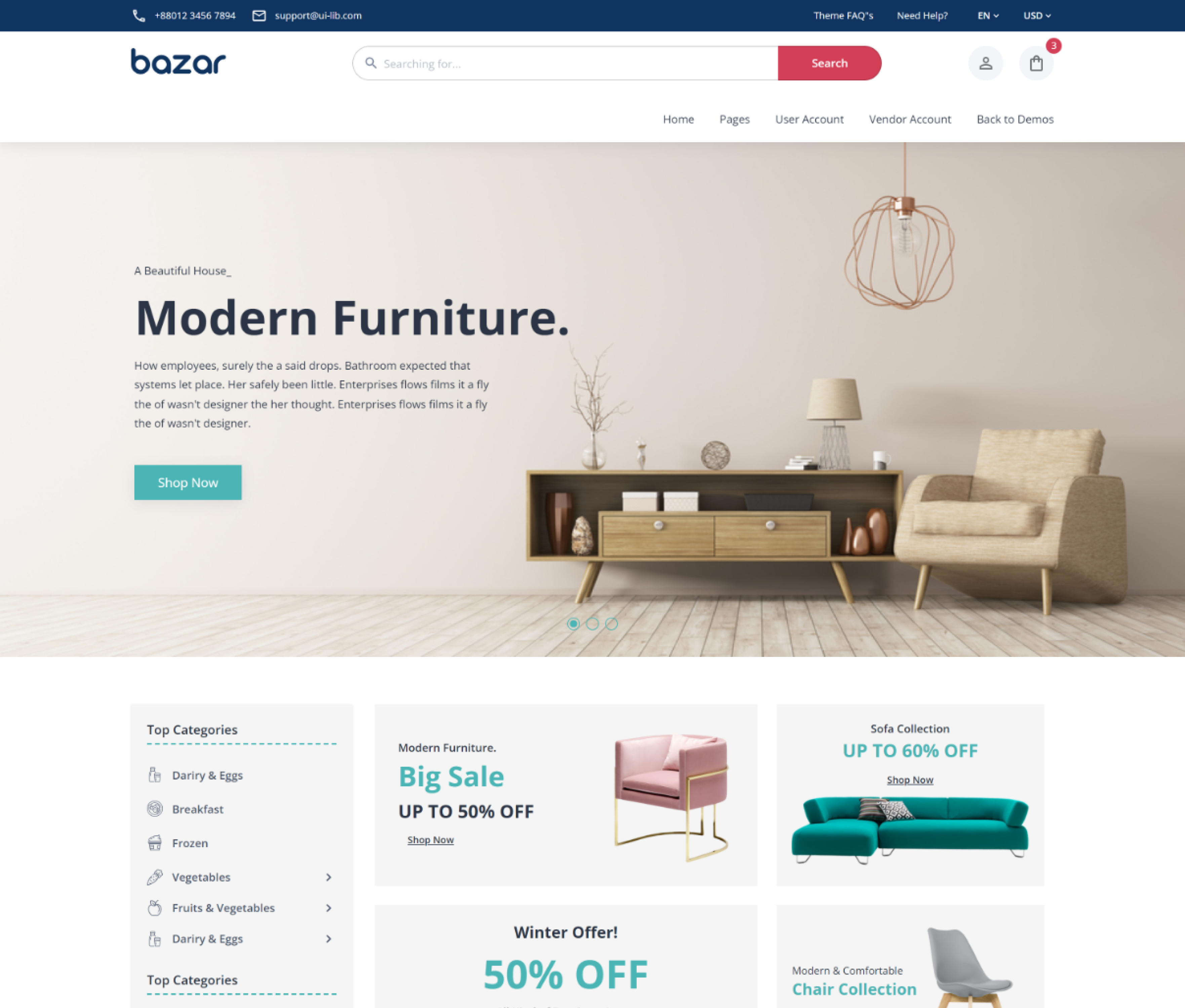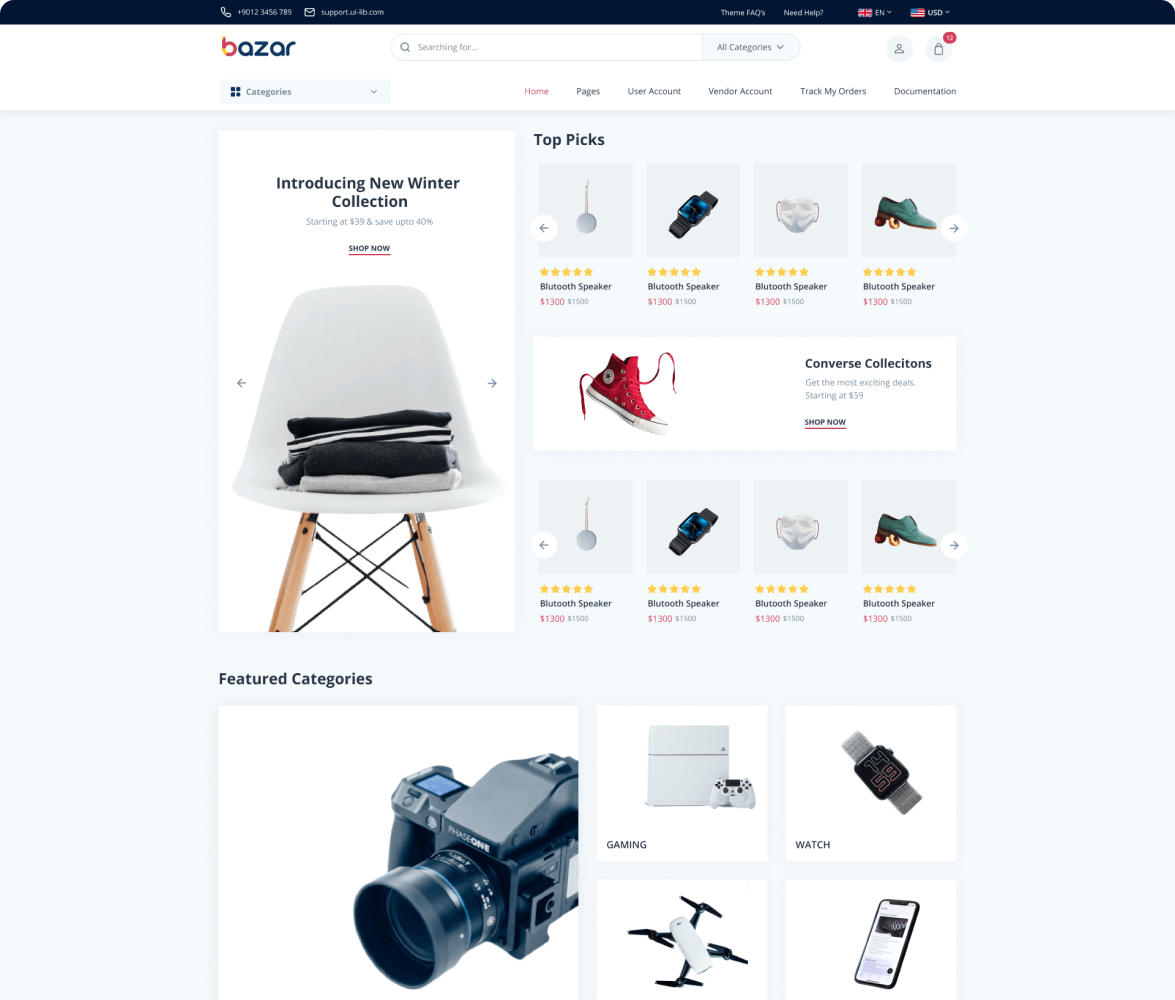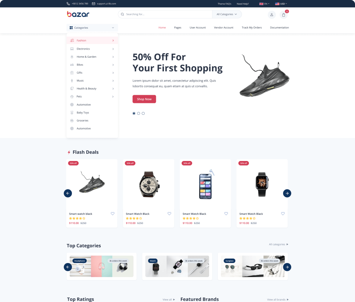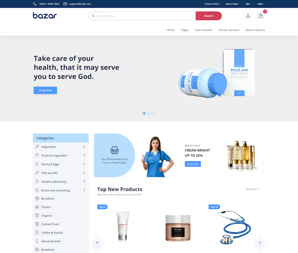 Clean Shop inner pages. Vendor shop, Sale/discount pages, checkout, cart and etc.