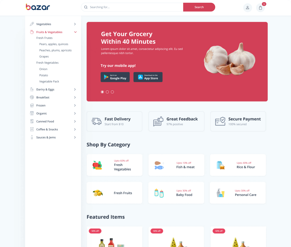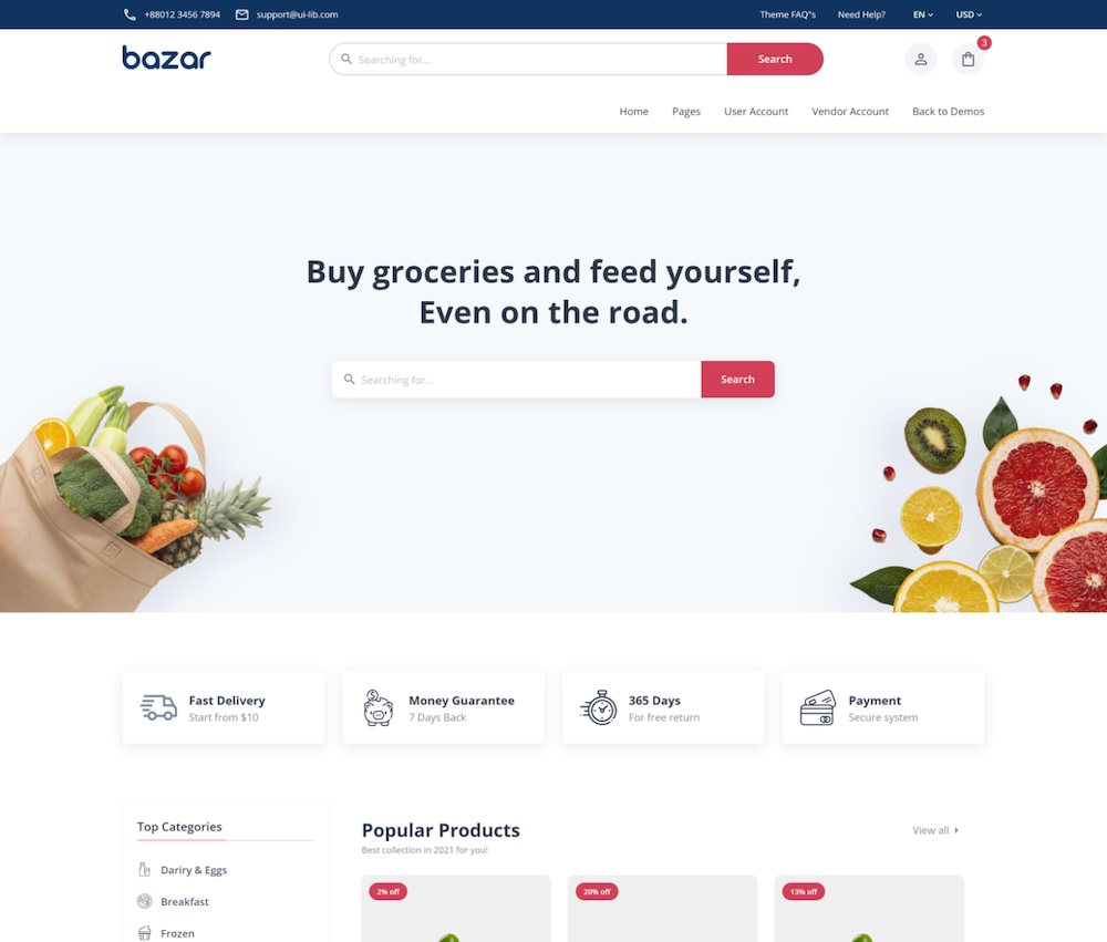 9 Niche shop demos for online store. Super store, Fashion, Electronic, Grocery and etc